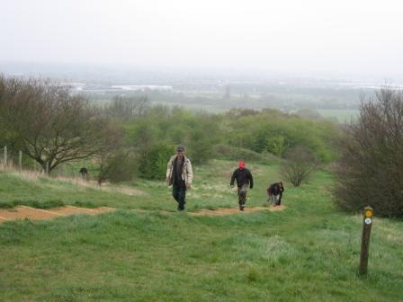 The walk now headed east to the Lee and lunch. We stopped at a public house that is still open (3 out of 5 on this walk were now closed). I had a nice couple of pints of real ale - VERY TASTY! We then moved north on the Ridgeway, survived an April shower on the way to Lee Gate, then on to Concord House, Boswells Farm then to finish at Wendover.