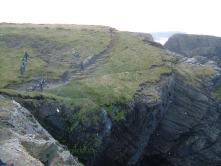Ten went to Tintagel (Steve, Marcellus, Damian, Lenka, Colin, Diego, Rabia, Elen, Kate and Zhang) on Saturday morning to see the castle; not much viewing due to wind, and then walked to Boscastle. They followed a route east from Tintagel to Halgabron and then a path through woods following another river to a waterfall. Their path veered north over a curving landscape towards and past a number of farms until they reached Boscastle for a late lunch. They found the Wellington Hotel very hospitable, in particular Lenka was impressed at how real the fish she was served for lunch was, it took them a while to convince her to eat all of the head, apparently in the Czech Republic they serve fish headless as well as legless in pubs. Their route back to Tintagel was along the coast, the sign read 4.5 miles and they arrived back amongst the wind and sun in around 2 hours.