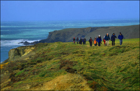 On Friday at 10 am Tom led 18 of us on a 10 mile walk along the coast to the south of the hostel. We had blue skies and gusty winds and breathtaking views of the crashing waves and spray of the sea bubbling up into the sky and falling like foam or snow drops. Lots of stops along the way to take photos, I've never seen so many members taking photos of the sea, sandy bays and rocks, but it was spectacular. We were extremely lucky with the weather, as we could see dark clouds inland. It remained dry, sunny but very cold winds, we had to be careful not to go to near the cliff edge and get blown over, unfortunately a member of the public did and a Sea Air Rescue helicopter and ambulance were required. We stopped at the National Trust Visitors Centre around 1pm for lunch and a welcome hot drink and cream teas and warm food. Some of the group walked down to the beach whilst the tide was out to explore. Tom did a head count - only 17! Had we lost someone on the way? He then realised he hadn't counted himself. We headed back along the coastal path, breaking into 3 smaller groups, walking back to the hostel, the black clouds looming our way and the tide coming in. Arriving back at around 5.30pm, it started to rain heavily and we were all glad to be back inside. Everyone enjoyed the walk, a comfortable pace for a big group. We all had a healthy glow. Well done to all.