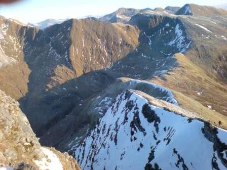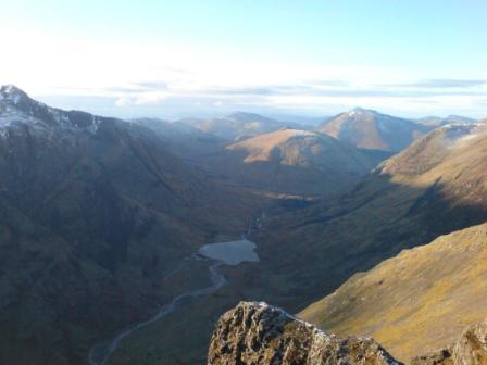 New Year's Day became in effect a rest day with a late start. In the afternoon we had a look around Glencoe and visited one of the (two) visitor centres at the glen. On Friday another big walk was attempted along the Aonach Eaghach Ridge. Once onto the ridge, however, it became clear this was extremely dangerous to continue with as every step became a matter of life and death, with sheer drops on both sides. A decision was made to abandon the attempt. The rest of the day was spent walking the flatter and safer West Highland Way between Glencoe and Kinlochleven.