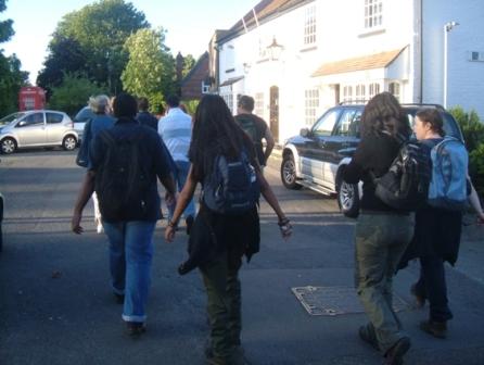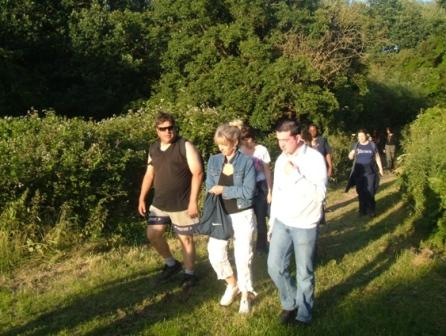 Saturday dawned bright and sunny. Eleven members sprang into action to capture the 9.10 train to Amberley, although Jeff sadly missed out on the reduced train ticket due to not being around for the headcount, and it being too early for Jan to count properly. A similar group of 11 members armed with children in buggies had a convoy around a 7mile route over the south downs, starting at a more civilised 10am. The Amberley route took in some stunning scenery and lasted about ten miles, ending at Arundel Castle - the planned route was originally 11.7miles but Brian used his joker card and without consultation bypassed the lunchtime pub break on the grounds that he didn't like the sound of the pub. He made up for his dictate by taking us to a lovely pub which served Badger (ale) by the river. A similarly delicious cream tea was provided by Belinda's, and Damien enjoyed initiation into the ritual of stuffing yourself silly with clotted cream. After a root around the castle, we pelted for the last train back to the hostel (Jeff arriving insouciant at the last minute) and to prepare for the Turkish Meal. To celebrate Pete D's birthday, eleven of us visited the Silk Road restaurant. We were treated by the sight of Pete showing an internationally renowned belly dancer how a real belly dance should be (twice). General cavorting took place afterwards to the sounds of the seventies all night long.