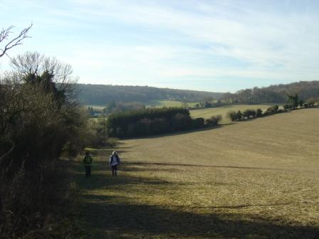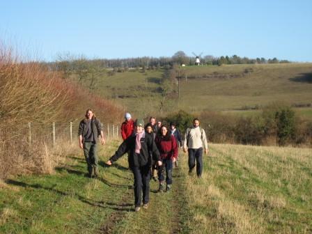 Luckily The Swan was still serving food and, though the chef's views when 25 people walked in and ordered food at five-to-two are not recorded, there was a log fire, plenty of seating, and the food was excellent if a little slow in coming. Alas some of the more timorous members of our group, fearing the Chilterns at dusk, bolted before all could complete their luncheon, however most people remained in the pub to partake of steaming hot apple crumble with lashings of custard, before also leaving to wend their way back to the car park.