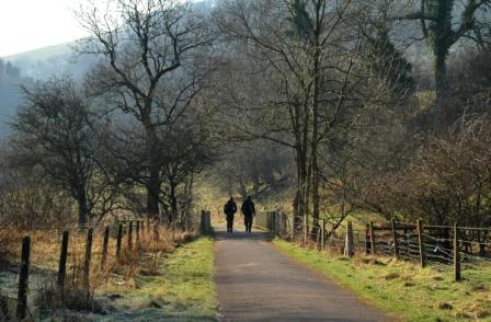 Pausing at the top of Park Lane to admire a fabulous view down to the lakes in the misty sunlight, then the steep descent to the Coy Carp where we stopped for lunch.