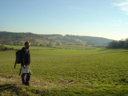 Across the field appeared a rather large mansion called Haydon Hill House (private) it said on the map, kindly provided by Bushey Library. Taking a detour to avoid the mud around Oxhey Brook, a gravel path led us through some more fields and a wooded area. After the Jubilee Bridge a dog was after Anneke's sandwich and insisted on walking with us for a while instead of its owners. Everybody's boots got tested for water resistance when walking along the Hartsbourne stream, followed yet by another muddy path up to the Paddingstone Cairne, a pile of rocks for directional purpose. Mark gave us all lessons on how to use a compass. In vain everybody tried to find these glorious views, which are supposed to let one see as far as Windsor. On the second leg of the circular walk, with all the mud getting to people, somebody said "are we there yet'. This was a family walk for big kids. Mark, just back from his skiing trip, thought nothing of the sliding around in the mud, and for me it was practice for my forthcoming skiing event in Austria. This being the first walk I have led I didn't lose anybody, and only one person saw the mud from a little closer than the rest of us.