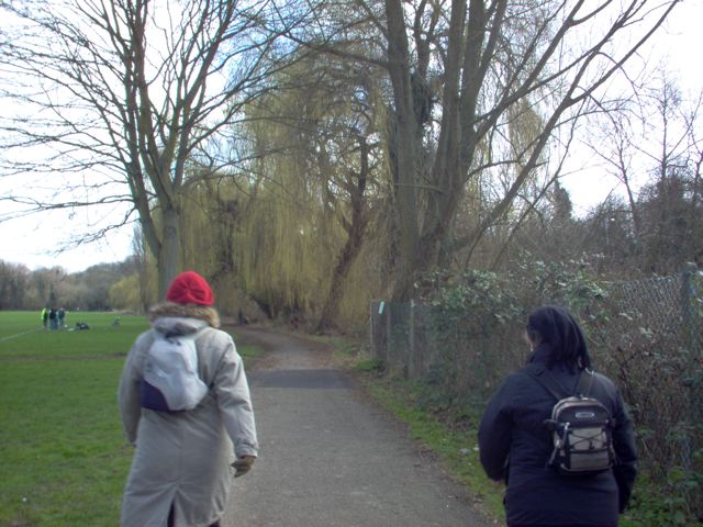 After lunch we continued north through Harrow Weald Common and then turned east again, crossing the Common Road into Bentley Priory Grounds. Here we left the London Loop section 15 to turn south and head towards Stanmore, crossing through the Deer Park where a few moments were spent 'fawning' the baby deer who were very interested in Simon and Jane's apples (a definite 10 on the 'ahh' scale). A few moments later we had emerged into the open space to be greeted by a few very friendly cows who were providing their own entertainment and then we turned south back into the urban jungle. After crossing the Uxbridge road we reached the last patch of green on the walk - Stanmore golf course which was crossed via the alleyway. From here we made our way via the 'Belmont Trail' (a disused railway line closed in the 1960s which used to connect Harrow and Wealdstone to Stanmore) down to Harrow Leisure Centre where a short walk past the houses led us to the finish at Harrow and Wealdstone Station.