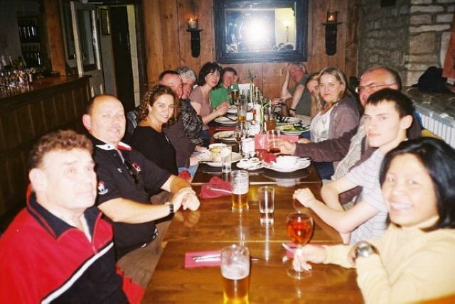 Saturday evening and three courses were served for all in the hostel. The food and hospitality shown by the hostel staff throughout the weekend was excellent. The third course was a special 12 inch square cake emblazoned with our group's and the YHA's logos in full colour and rich in taste and texture. After dinner many went to one or more of the pubs in close proximity to the youth hostel.