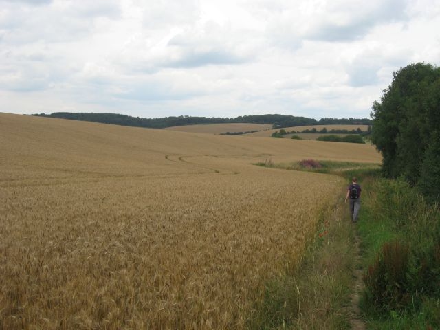 The walk passed (at a good pace) through all sorts of terrains, including a dash trough an overgrown cornfield, and the weather was pleasant - warm, some sunshine and only 10 minutes of drizzle to oblige us to check whether we had the right equipment with us. At lunch at Polesden Lacey we agreed that they installed the greatest invention of modern times, which happens to be English (but I will not bore you with details).