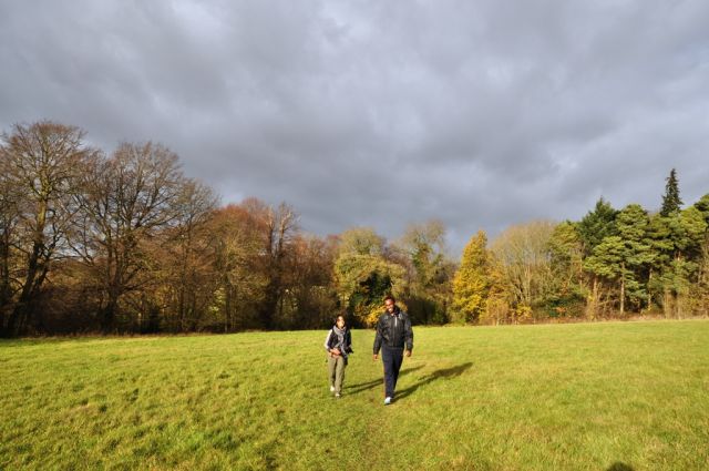 It was with much gratitude and surprise that I was greeted by 14 fellow HAWOG-ers (and one work buddy) on a crisp Sunday morning to join me on my first led walk. After a very prompt start at 11:15 we took the walk down through the woods and across the quaint churchyard of St Mary's to emerge in Amersham Old Town. After negotiating the road clogged with impatient Sunday shoppers heading for Tesco's we emerged unscathed onto the South Bucks Way (SBW) and headed off south-east, parallel to the Misbourne River. We had a little detour at the suggestion of Mary T to 'stretch our legs' a bit and went up the hill on the south side to look back down onto the river valley and it was pointed out by Bob where the new High Speed 2 Rail link would be built in a few years and which will sadly will change the tranquil valley forever. We continued round over some fields and back down to rejoin the SBW, everyone a few kilos heavier due to the mud boots they were wearing. After crossing several fields and farms we emerged alongside the rather luxurious residencies of the well-to-do of Chalfont St Giles and continued into the centre of the village. A quick step took us to have a look at Milton's cottage, and another photo opportunity preceded lunch at the Merlin's Cave pub where we were greeted with a range of tasty meals, albeit rather spread apart throughout our 90 minute stay. However the time was filled very well by tales of previous excursions from Jeff, unashamed plugging of his forthcoming Isle of Wight trip from Martin and much beer drinking from Simon! We continued onwards with full tummies over the hills and past the Chiltern Open Air Museum where Brian F shared his some tips on how to impress a girl on a date - by taking them round old buildings in the rain! We were joined for a short while by a beautiful redsetter dog and her owner before descending into Philipshill woods and finally ascending up into Chorleywood, from where it was the final leg back down to the station. Amazingly there was no rain throughout the day despite the foreboding forecast and a lovely time was had by all 16. A few more of us even managed to make it up the hill to Chorleywood common where we settled into the Rose and Crown for a couple more rounds of drinks! Thank you to Mike S, Mary T, Emma E, Martin J, Michael, Simon H, Brigitta, Steve N, David, Brian F, Jane, Lorna, Anna, Bob and Jeff. Look out for Part 2 - Chorleywood to....maybe Moor Park in the summer.
