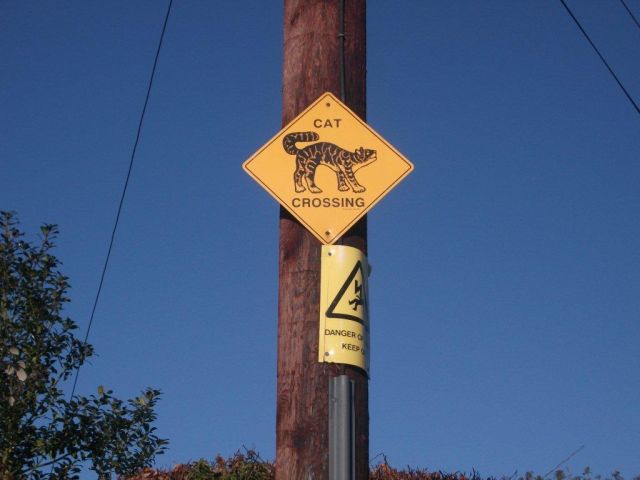 Watch out for the cats eyes! Road sign in Oxfordshire - Photo by Jane