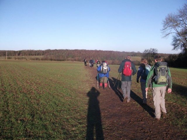 We had lunch in Satwell and squeezed into the tiny pub, upsetting some of the regular diners by blocking the heat from the fireplace (it's a hard life in the country). The afternoon was very sunny as we passed the Tudor house of Grey's Court and descended through woods to Henley-on-Thames. Here we picked up the Thames Path and crossed the river at Mill End arriving back to the start point at 4pm having completed the 16 mile route in daylight. Thanks to all who came: Steve R, Phil, Keith, Simon, Claire, Jim, Mary, Paul and Erika.
