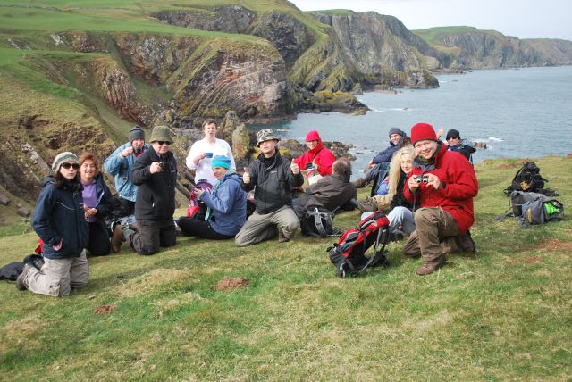 On Friday we did the Berwickshire coastal path, 13 miles from St Abbs to Burnemouth. The high cliffs afforded magnificent views of the coastline as far south as Bamburgh (50 miles). St Abbs head is a great place for spotting marine birds. Paul identified the thousands of kittiwakes and guillemots nesting on the precarious ledges around the cliffs. At Eyemouth we had some excellent ice creams from "the best ice cream shop in UK", voted by locals? We then crossed the famous Eyemouth golf course with its "unplayable 6th hole". The golfers all managed to overcome the chasm between tee and hole despite us watching from the cliffs. We ended the evening as before at the splendid Barrels Inn, where Kim got to know the manager and Hayley demonstrated her electric cigarettes to locals.