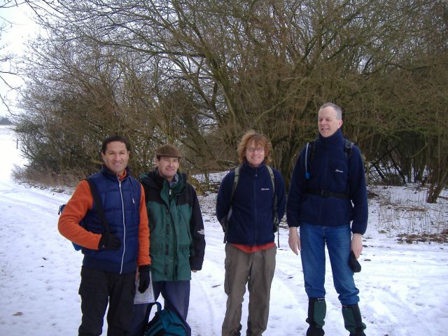 On Sunday we enjoyed a hearty breakfast where Martina and Kim recounted tales of being woken at 4am by rowdy guests on the floor above. The hotel were still trying to track down the culprits when Derek and Prem crept into the dining area sheepishly. On the walk we took in the views of the frost covered Chiltern Hills. The route took in Hughenden Manor where Jan was rewarded with a personal tour of the Manor grounds from the game keeper. We found a very warm welcome at the "Harrow" pub for our lunch stop. They had reserved us an area and had a large selection on the menu. Afterwards we continued on the route with some steep climbs back to the Uplands highground. We finished back at De Veres for a final tea stop where we thanked Kim and Jan for finding the venue and arranging a great weekend.