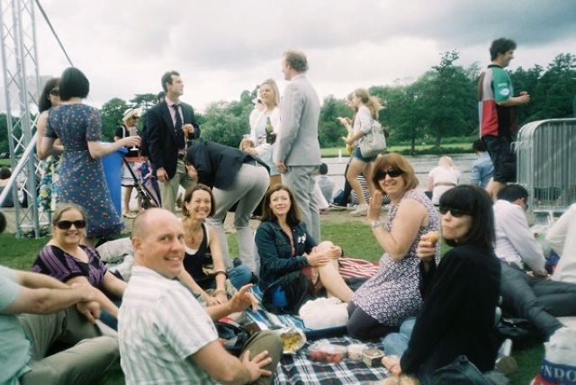 We then had our picnic lunch next to the Japanese water gardens where Jan produced her huge Herman the German fruit cake. After the cake Vic led us into the maze where we lost Jeff and Harpreet and eventually found David in the middle as he was signalling the route via his extended aerial to everyone lost in the maze. On escaping from the maze Peter led us with commentary through the Profumo sights, the fountain, swimming pool and hidden pavilion. Dusk was approaching but, as planned, we had time to make it to the excellent orangery tea rooms. Nancy A could not make it, however Jane came to the rescue and kept up the cake theme by giving everyone jubilee-wrapped portions of her splendid icing-covered fruit sponge cake.