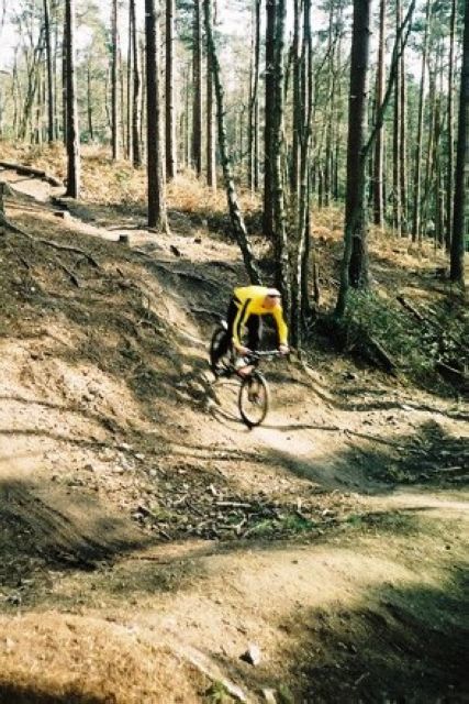 18 of us met at a very sunny Dorking on Saturday. This was another joint ride with Lofty's cycle group. Our route took us via Heathland to start the climb up to Leith Hill. After a long ascent we reached the summit for some great views towards the South Downs. The tea hut within the tower was very busy today as the viewpoint was full of other cycle groups and hikers. We then continued our route via Holmbury Hill with some very fast descents alternating with climbs. Near Peaslake, Suzette (one of Lofty's group) led us on a detour through the "Golden Burrows" off-road course. This was an exhilarating series of precipitous descents with hairpin bends and jumps. Brian F did a spectacular leap at the final burrow and landed perfectly at the finish line.