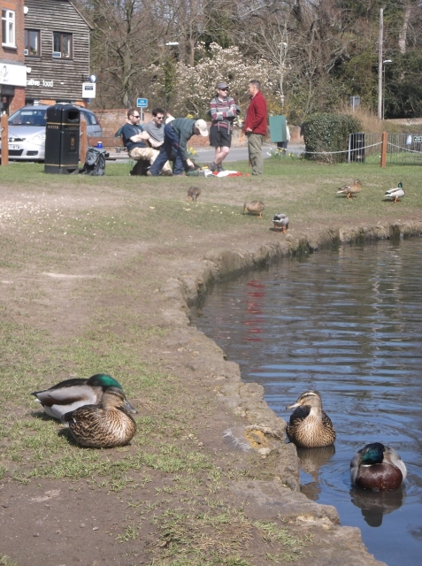 Walking up via Chorleywood golf course, then going across the Chess River, at this stage a narrow stream, we encountered our first proper ascent to Sarratt via Church End, on wet and green grass. In Sarratt we stopped for a group photo in front of the post office / convenience store. That was just after Mary had highlighted the cute duck house sitting in the middle of the village pond (story doesn't say whether it belonged to the local MP or not).