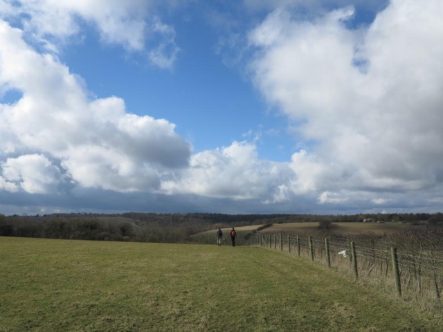 The walk itself was rewarding - it was sunny, the temperature was mild and the route was scenic, with great views over the hills and valleys. From Whitwell we headed north and we passed through St Paul's Walden, Hitch Wood up to Chapelfoot and then south west to Preston and Ley Green where we attempted to stop at the pub. The cooks were on holiday so we walked further south to Breachwood Green where we stopped for lunch at the local friendly pub The Red Lion. From there we headed south to Perry Green, which we did not reach in order to keep the length of the walk within the advertised length, and then east to the starting point. We did approximately 16 miles and the pace being good we finished just before 17:00.