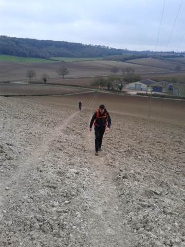The national trail is 100 miles long, and we started walking it from west to east, beginning at the statue of King Alfred in the centre of Winchester. We weren't able to start until around 10:45am on the Saturday, but the rolling hills and the dry (although not too sunny) weather enabled us to cover the 14.5 miles to reach the summit of Old Winchester Hill by around 3:30pm - perfect timing, as the sun was just starting to set. The remaining 1.5 miles to the end of the day's walk was covered by 4:00pm, meaning that we didn't need to use the torches that some of us had brought along. We got back to the B&B with plenty of time to spare before heading out for a well-deserved curry in the evening.