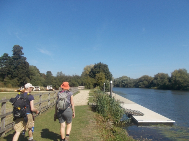 Reaching Windsor we followed the Jubilee River through Eton and Dorney with a detour to Boveney village to visit the 12th century church and medieval manor. Following the Thames path we then found the 2000m long Eton College rowing lake, used for all races at the Olympics. Nick took advantage of the long straight to put his new (power-assisted) off-road cycle to the test, reaching 55kph at mid point. We then continued to Bray and late lunch at the historic Pineapple Inn with its vast range of huge sandwiches on offer.