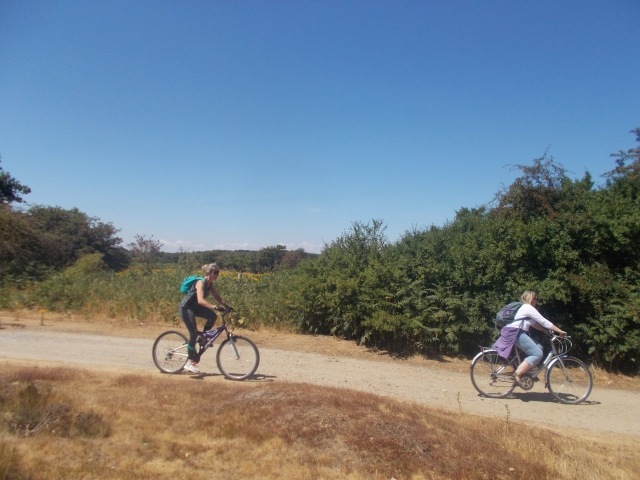 Our latest cycle event was an off-road route on another baking hot day on the coast in Essex. The C2C train (packed with seaside passengers) swept us along the coast to Hadleigh Woods. Returning cyclist Dean joined regulars Brian, Kerry and Coogee on the Olympic mountain biking course there. We managed to stay on the bikes for the majority of the tracks; fast hairpin descents and some jumps were involved. Kerry did one tumble but bounced back onto the bike before we could take photos. We had lunch at the Hadleigh Castle tea rooms, with views down to the sea and the Kent coast in the distance.