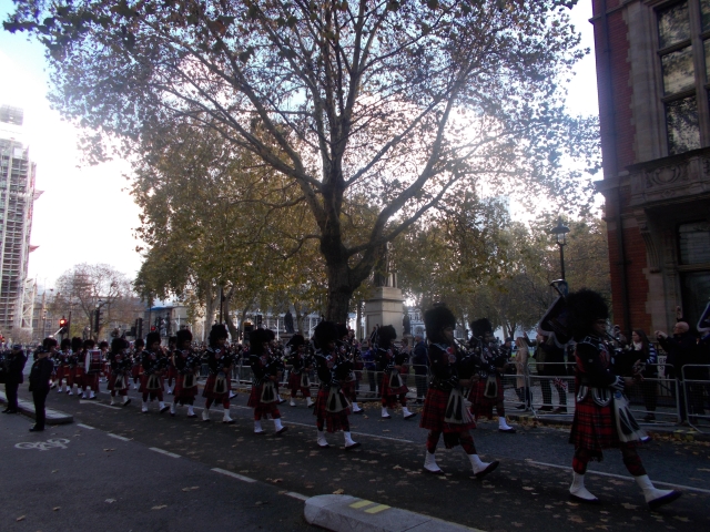 Reaching St James Park the commemorations were in progress with parades, bands marching and veterans laying wreaths at the memorials. Nick led us on a detour to Waterloo for a Banksy and then we rejoined CS3 to follow the Thames via the Tower to the Limehouse Basin. At Cable Street we came upon the mural to the famous stand against the black shirts. We had a late lunch at the riverside Captain Kidd looking across to Rotherhithe. We stayed later for a visit to the Tower for the torch lighting ceremony in the moat before a final stretch on CS3 and trains back west.