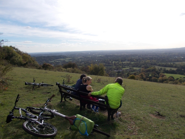 On another fine sunny autumn day Brian, Kerry, Coogee and Diane set off from Epsom town; we ascended the old village tracks up to the racecourse on the Downs. We then cycled along Stane Street (Roman Road to Chichester) now an excellent bridleway full of challenging descents and climbs. At Mickleham Downs there were several walking and cycling groups including the inevitable Duke of Edinburgh hikers. A lovely climb on the plain took us to Headley Heath and the welcome CTC café.