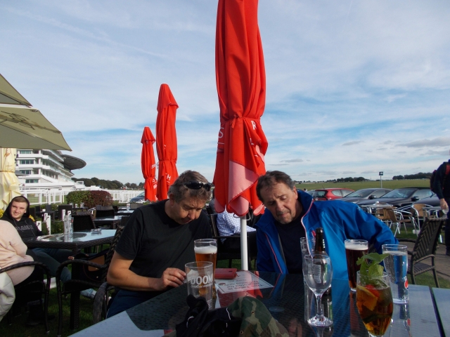 After burgers and teas we began the next section through heavily wooded hills for the climb up to the North Downs summit. At Colley Hill we were rewarded with panoramic views over Surrey and Sussex as far as the South Downs on the horizon. We headed north through the fern covered sandy heathland of Walton Heath (host of major golf tournament the following week) before reaching the charming village of Walton on the Hill. We then took in a very fast technical descent before the unique crossing of Epsom racecourse via bridleways open on non-race days. As it was such a fine day we stopped for Pimms at the rather posh racecourse pub; our tables alongside the running track with stunning views across the Downs.