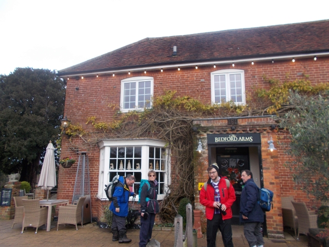 We headed off towards the River Chess and followed the river for a while before heading up to Chenies. We then followed a route to take us west of Chenies before returning to the village for lunch at the Bedford Arms. We had our own room for lunch and 10 of us enjoyed an excellent meal although strict portion control was observed for some of the dishes. A few of the group joined us in the pub once they had their lunch and part of the group decided to head back to Chorleywood.