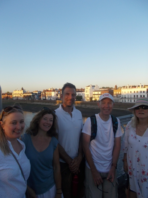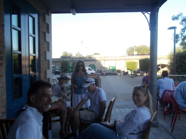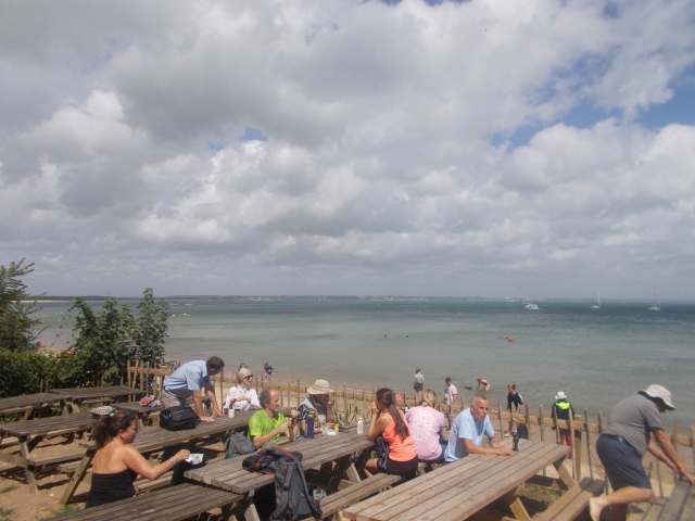 Sunday brought a different world. 12 brave cyclists managed the Rodwell Trail until a sudden gust blew Bev nearly over the bridge to the Isle of Wight. The hardy ones continued up the hill to the Olympic Rings and magnificent view over 19 miles of Chesil beach. Chris and Paul, Archie and Ollie, Liane and Brian managed to keep up with Rob C, designated sheepdog herding up the stragglers on the wind-blown bikes all over the island. We were met by campers and the reappearing Mike S who had a day trip over to Portland and the museum. The festivities continued in Sandra and Rob's adopted new pub and Jan, Humay and Liane showed the locals how we dance in London Town.