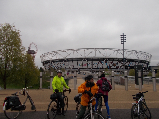 We departed then to cycle across the famous Hackney Marshes, seeing football matches taking place at the largest sports field in the country. Next stop was the Olympic Park, lots of noise from the stadium where West Ham were playing Manchester City. Then onto the historic 18th century Three Mills Island and finally Limehouse as the Lea meets the Thames. We enjoyed some riverside drinks again at the Prospect Of Whitby watching the many vessels glide by. New cyclist Diane joined regulars, Brian, Nick, Coogie and Kerry.