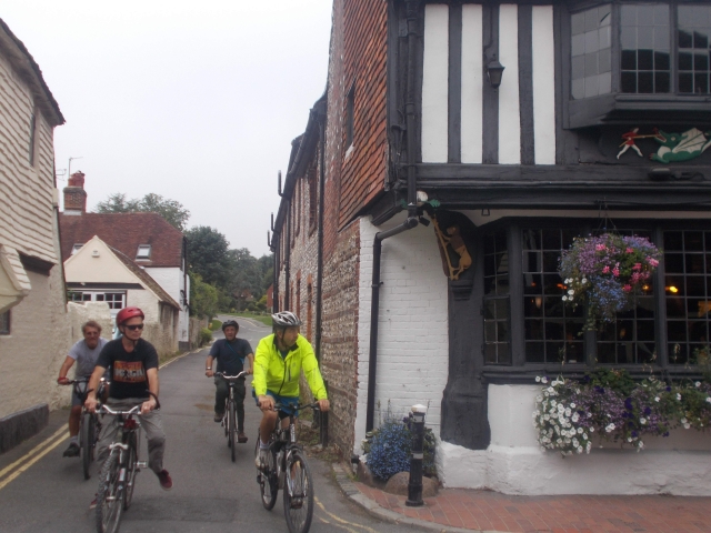 Our latest cycle ride was an off-road route of 25 miles through the delightful countryside of Sussex. We started on the Worth Way sustrans track stopping first at Worth village church, a very rare example of a Saxon church. We managed to do a short tour whilst families gathered for a christening. We continued on the Worth Way to the late medieval and Tudor era timber buildings in East Grinstead. We found a welcoming tea shop in the market place of this historic town.