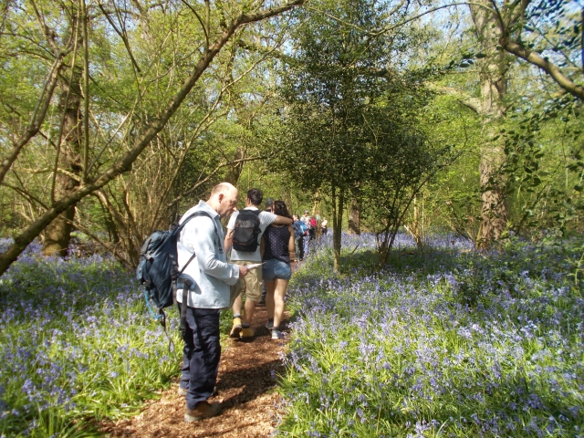 31 of us turned up for the Bluebells walk. This was the most we ever had! I was very glad to have Brian help me. We all headed off from Perivale Station to the reserve. We collected our maps and Daniel got a pack for kids with 'activities and learning' as we went around. We soon were immensely impressed by a sea of bluebells. The smells of the flower were very powerful. We made our way around the 1 mile pathways completing the activities like wood necklace painting and identifying plants. The painting was for the kids but we had a few big kids on the walk like Mike and Cathy so it took a while longer than planned. When we made our way back to the cafe at the start. It was then I realised that we were a much smaller group. Seemingly a few had carried on to Horsenden Hill. We then had some lovely tea and cakes on the lawn and we were joined by 5 more.