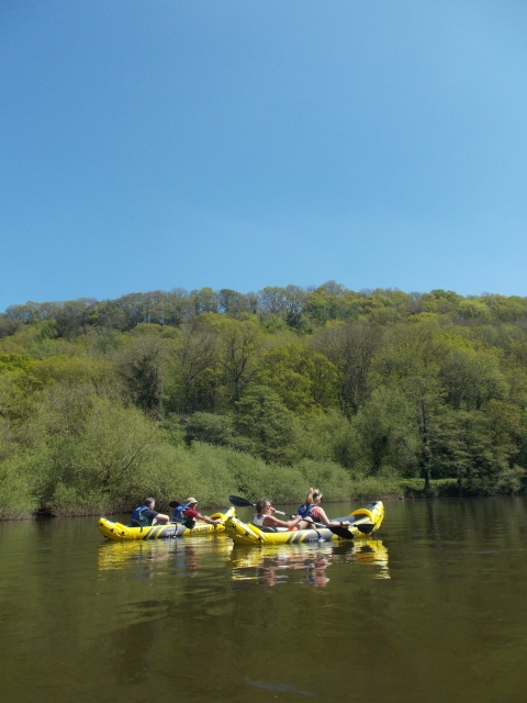 The next morning we were again set for a glorious day, with the unusual request by an elderly volunteer at the hostel to "move your cars now" to allow a horse trekking event to take place, he was from then on known as Lord Goodrich. It was then time to set up the inflatable kayaks with some very nervous crew, but once we got our sea legs it was enjoyed immensely for one of the most scenic trips on a British river. However Colin thought he was on a cruise ship and never adjusted his lilo position. Once we reached Symonds Yat the boats and crew all piled into the van for an asylum seeking trip to the pub, some ventured off to do geocaching and a lucky few managed to get into Goodrich Castle before it closed.