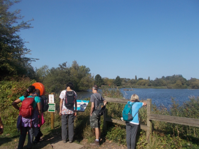 Catching up with news from old friends and acquainting myself with new members, we were thrilled to see a flypast of three spitfires and a hurricane flying in formation, to commemorate the Battle of Britain, on their way back to base. Two large swans who had commandeered the canal path decided they didn't want their photo taken and proceeded to attack some of our members by pecking at them. Surviving that, we soon arrived at Rickmansworth aquadrome, where to avoid a mutiny in the hot sticky weather, I decided we should stop at the Lakeside cafe for refreshments. We then continued past Bury Lake with sailing boats enjoying the day. Entering Stockers Lake nature reserve we slowed to enjoy the birds observing them from the hide and spotted a great crested grebe. Sugandha kindly gave me some technical tips for my new camera as we enjoyed the magnificent vistas across the lake, a wetlands nature reserve and nesting area for herons in the spring.