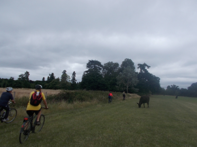 The 4th of July saw the second of my bike rides. We met at West Drayton and swiftly found our way northwards along the Grand Union Canal to the Slough Arm. This was my favourite part of the ride and my ulterior motive as we swept past High Line Yacht Brokers and I struggled to maintain concentration as the distraction of so many narrowboats for sale almost had me in the canal on more than one occasion. We soon found our way into Langley Country park through fields of stunning specimen woodland and the "Old Man of Langley" (thanks Kerry for your bountiful knowledge of the area) not to mention the odd cow or three who were more than accomodating as we delighted in the lack of stiles thus far. Into Black Park and around the lake we enjoyed the view and were ready for lunch but I decided to try and cover another mile or two before stopping and I thought I'd hit the jackpot when we stumbled on the Fox and Pheasant, which unfortunately turned out to be closed!