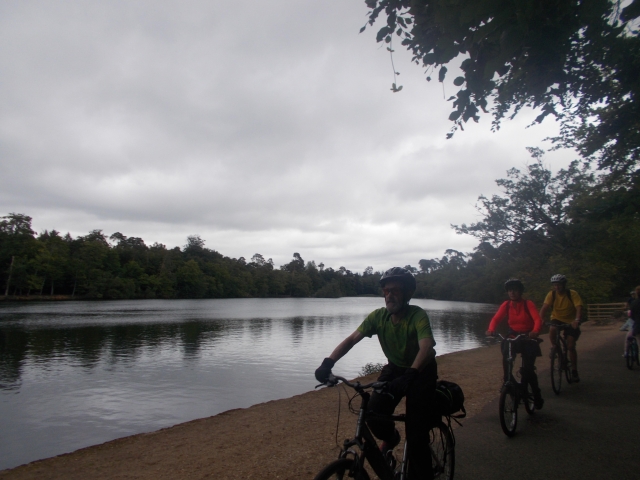 Brian, Coogee and Dawn met Diane and me at Denham Station on an overcast Saturday morning. After a short discussion on the whereabouts of our sixth companion a text was sent and arrangements were made to meet up with Kerry later in the ride. We initially headed for Denham Country Park and then cautiously navigated our route across the fairways of Buckinghamshire Golf Club. We crossed a small wooden bridge over the delightful River Colne with its' gravelly bottom and long flowing plants waving in the current. This led us to Colne Valley Park (Denham) and Harefield Place Nature Reserve where some flooded quarries have been recycled to provide relaxing leisure activites for those seeking some time with nature. This was when Brian explained that the lovely HS2 railway will soon be part of the local landscape, how delightful! We met Chrissy (another HAWOG member) and some friends at that point too. It was about here the heavens opened and my phone packed up, so big thanks to Coogee for the loan of his iPhone which I used to navigate the rest of the ride. This was my first attempt at hosting a bike ride, so I should apologise for the amount of stiles I had included in the ride; after leaving the quarries we had four or five stiles to negotiate which left us a little drained and eager for lunch so we scooted through Bayhurst Wood Country Park and then Mad Bess woods where we stopped briefly to admire the open air chapel.