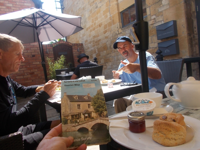 This ride turned out to be a lot longer as all participants decided to add a loop and further fast descents. On a fine sunny day we rode 34 miles around the Chiltern Hills and Ridgeway involving climbing 2,600 feet over various ascents. The first section was from Princes Risborough along the Icknield Way before the climb at Chinnor. Then we followed quiet lanes to Christmas Common. We had lunch at the Fox and Hound, at the garden marquee, together with hay stacks laid out for a hoedown. Under the marquee Jeff and Tim had a very technical chat about Morgans and Defenders.