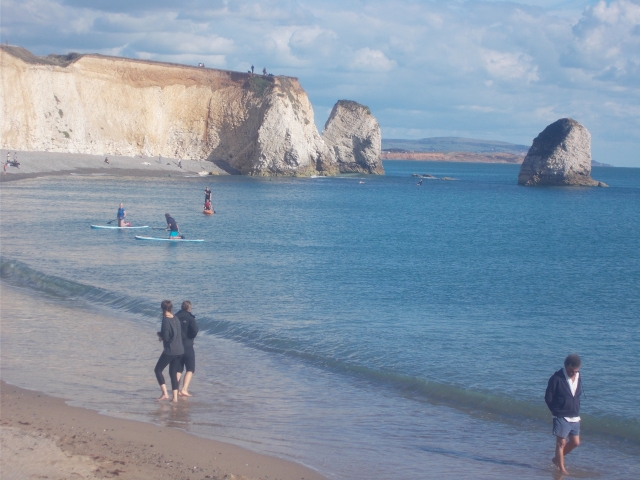 Sunday was another hot sunny day, Gilly cooking a huge fry-up for us, using 3 gas cookers simultaneously, "I learnt from Floyd" she explained. After striking camp we spent the day exploring the vast expanse of Botany Bay. The expanse of golden sands is far less busy than nearby resorts. Chalk stacks and sea caves are prominent within the cliffs. We ended the walk at the Botany Bay Hotel for tiffin after a lovely sunny afternoon by the sea.