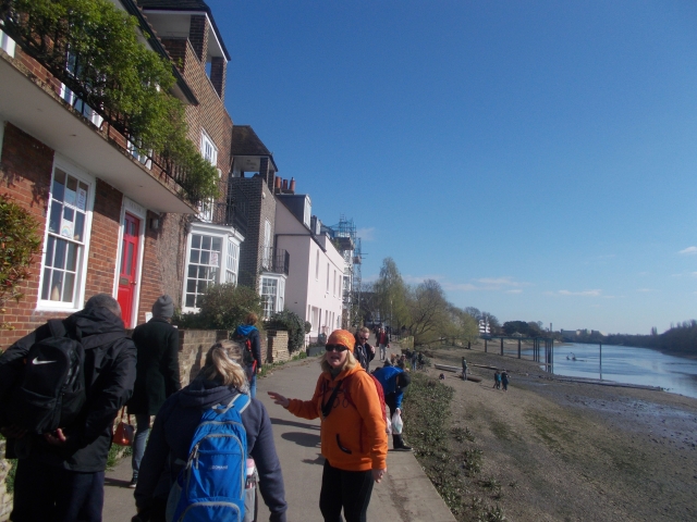 Our route followed the Thames through Strand on the Green, Chiswick Riverside and Dukes Meadow. In the parks and tree-lined lanes we took in the apple and cherry trees, their blossom vibrantly colourful. The magnolia trees were also in full bloom in many gardens in this quiet quarter of London. Carole took us on an unofficial circuit of Chiswick Marina "I know some of the yacht owners" to admire the impressive vessels moored there. At Dukes Meadow the lawns were full of picnickers and people playing sports. Our route then took in the Palladian wonders of Chiswick House landscaped gardens including camelias, very colourful in wooded glades.