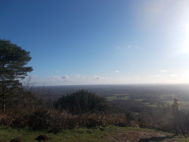 Saturday brought the most beautiful winter's day. An intrepid band of 13 set off, with a passable display of faffing for 15 minutes. After much consultation of maps, we managed to make it out of the car park and head off towards Holmwood Common through the woods. Sadly Dee was summonsed back to the hostel for an emergency car manouevre and took Shakespeare back with her for moral support. The rest of us became quickly separated in the depths of the woods within another 10 minutes. After regrouping on the road near the pub, we held close together and headed towards Leith Hill. After an abortive emergency stop to try and meet up with the rest, in the wonderful new popup cafe popular with cyclists and walkers alike, we started a steady climb through the woods to Leith Hill following the Greensand Way. We were welcomed at the top with amazing clear views of the South Downs, as we stood at the highest point of South East England. Several cups of tea later from the National Trust tea shop in the base of Leith Tower, we were joined by Tim P and Duke, our long-suffering four-legged friend. We shuffled through gold and amber leaves down along Greensand Way back behind Broadmoor and stopping for refreshments at Abinger Hatch. We were ushered into the ginormous teepee with fur rugs and open fires, at which Janet launched into a rousing rendition of 'Wig Wam Bam'. Dee and Mike joined us after an full day of tree hugging and photographic heaven. A full 9 miles was completed in the end, which was no mean feat given the logistics of keeping everyone on track. The other half of the group had a more civilised day, doing their civic duty to keep the economy alive, in Guildford town centre. Cathy received an extra unexpected dinner in Wetherspoons and multitudinal Christmas gifts were purchased.