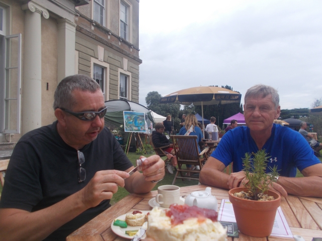 Sunday was another scorchio. Our walk took in the huge, landscaped estate of Cirencester Park, designed by the famous poet Alexander Pope. From the town the park is laid out with avenues of chestnuts several miles long all radiating from the parish church. By chance this weekend was the annual Cirencester Park Horse Trials, a challenging tournament of cross-country and arena show jumping. We admired the dexterity of the riders guiding their mounts over the long course. The food and drinks stall served rather splendid breakfast baps, so we had an impromptu picnic taking in the views and the horse trails. Our route back took in more medieval streets before a final tiffin stop at a pavement coffee shop after another excellent holiday in the Cotswolds.