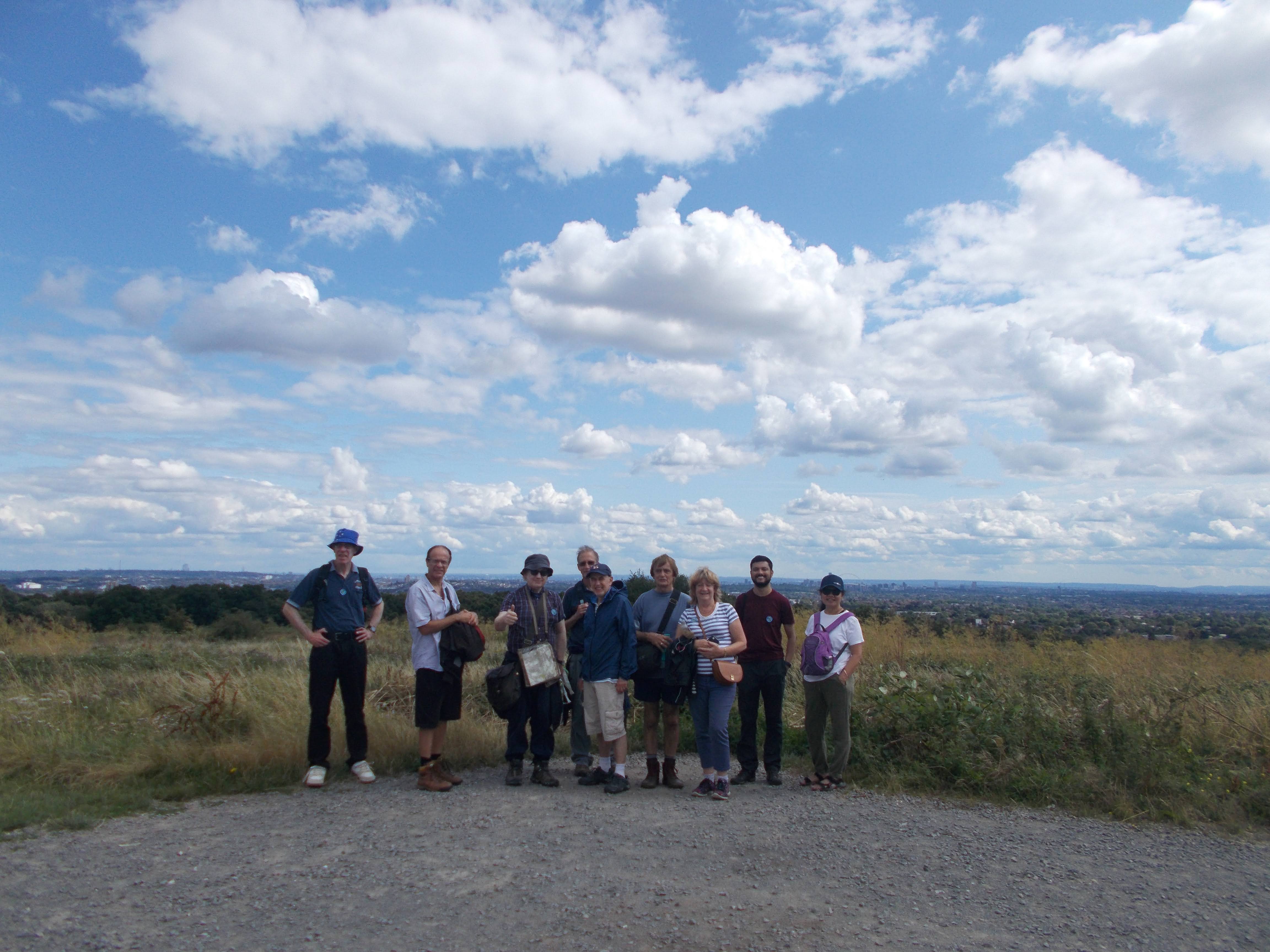 After a short woody wander, we made our way to the bustling but cute Pavilion Cafe for lunch. Two of our party left after lunch for prior engagements, leaving five of us to continue through the woods and onto the second part of the railway line. Here, the route follows the contour of a steep hill, and affords fine views of an arc from Ilford to the City. After a short ascent across the grassy hinterland of Alexandra Palace, we arrived at the summit to see early queues forming for an evening concert - some sort of Indie Rock judging by the attire of the fast-assembling but ever-patient pimply youth. Walking around the Palace, we paused to take in the view which now extended from South Essex to the West End. Entering the main reception gallery, we took some time to look round the exhibition of old TV studio equipment - state of the art when some of us were kids! Descending via a different path, and briefly pausing for long-anticipated ice creams, we made our way through Hornsey to Queens Wood, the dark stillness providing a contrast to the hustle and bustle atop the hill. A brief circumnavigation of the wood spilled us out close to Highgate Station and the end of our gentle but rewarding day.