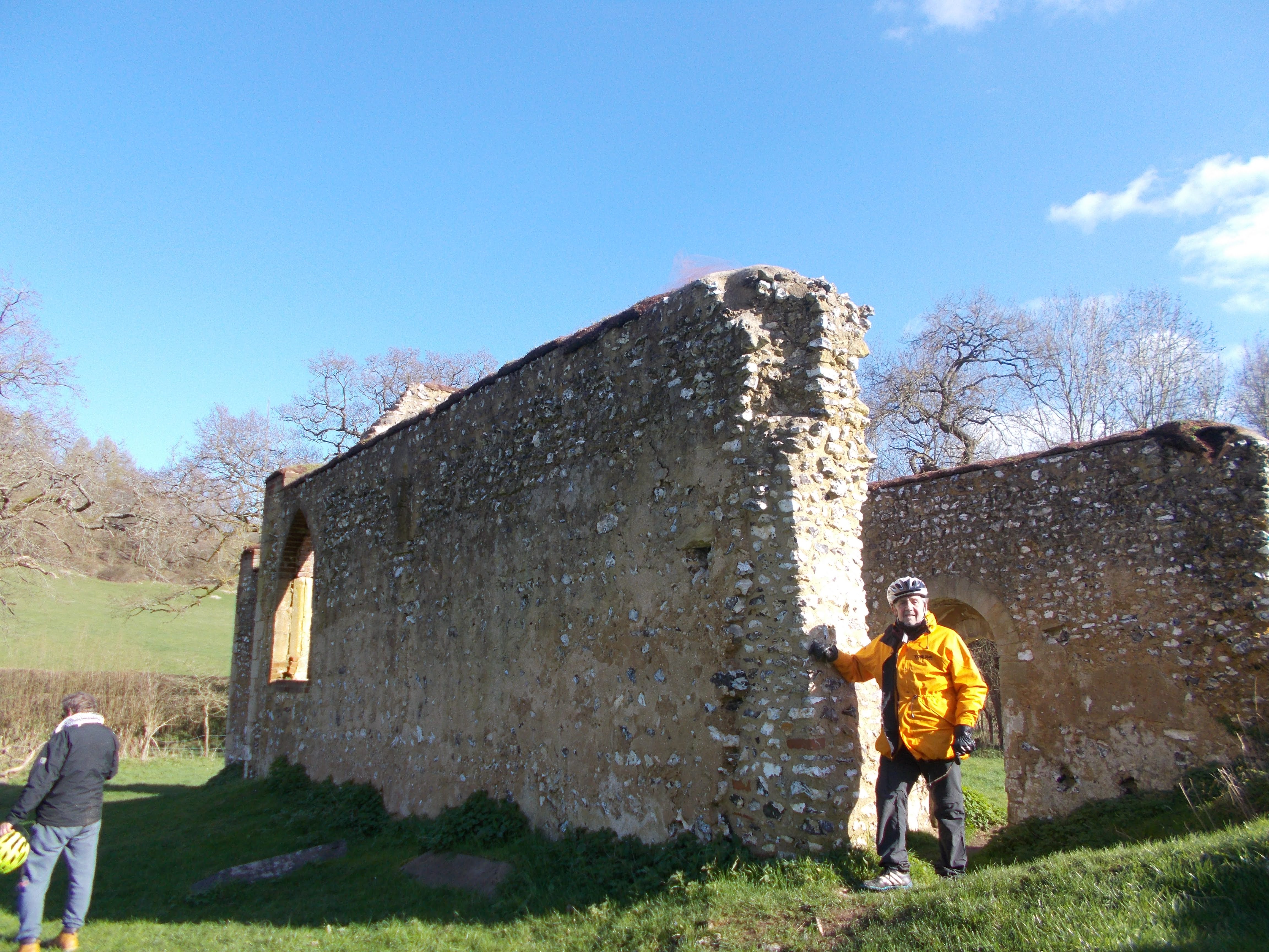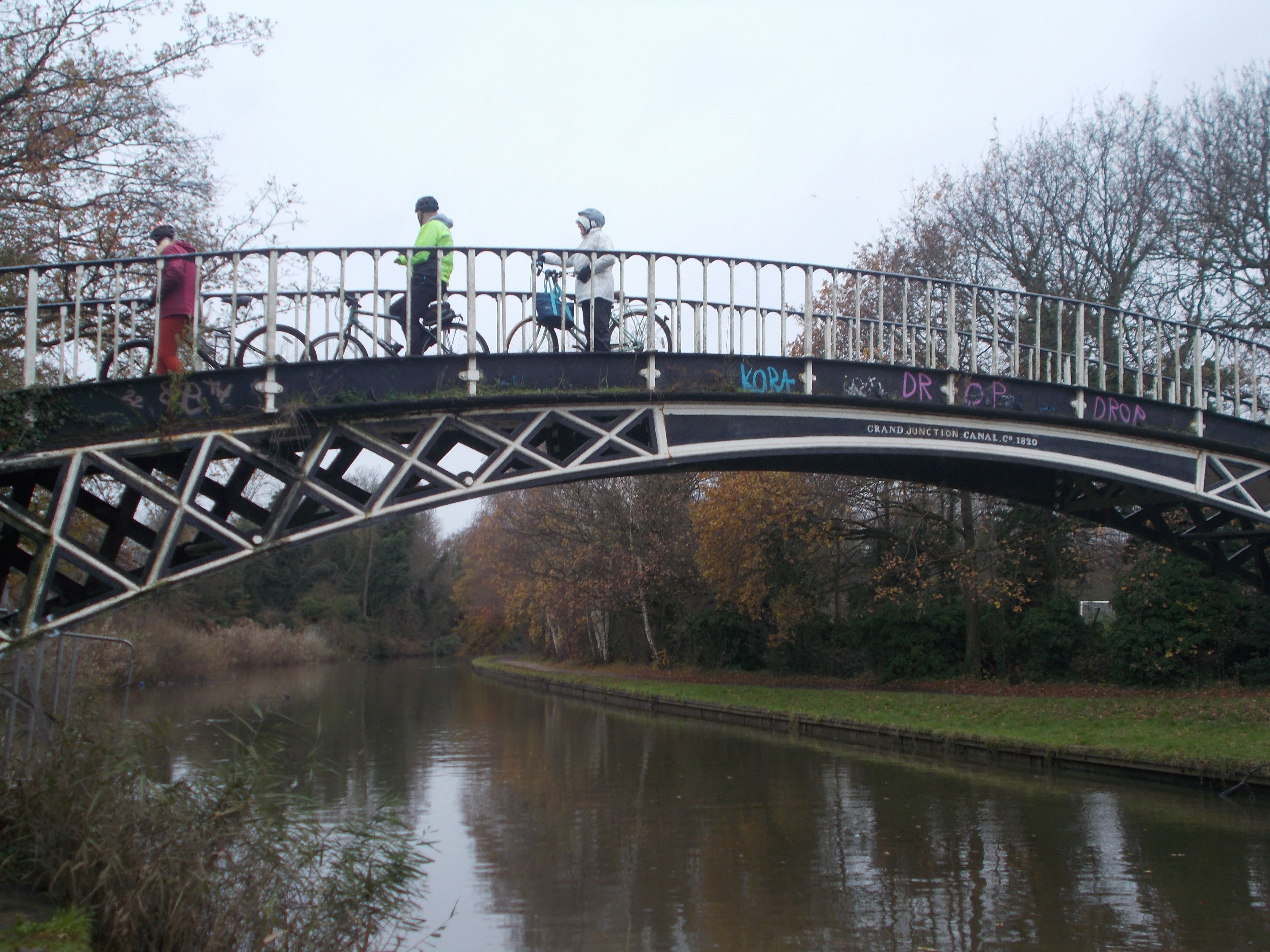 Five cyclists met at the Rusty Bike Cafandeacute; on a cold bright morning. After coffee and warming cheese toasties we set off on the Grand Union Canal. Nick G delayed arrival due to miscounting number of wheels required. Detour through Denham Country Park before cycling through the historic Denham village. Then to the aerodrome where a single engine plane descended over our heads. Then bridleways through the thick woodlands before descent to Chalfont St Peter village.