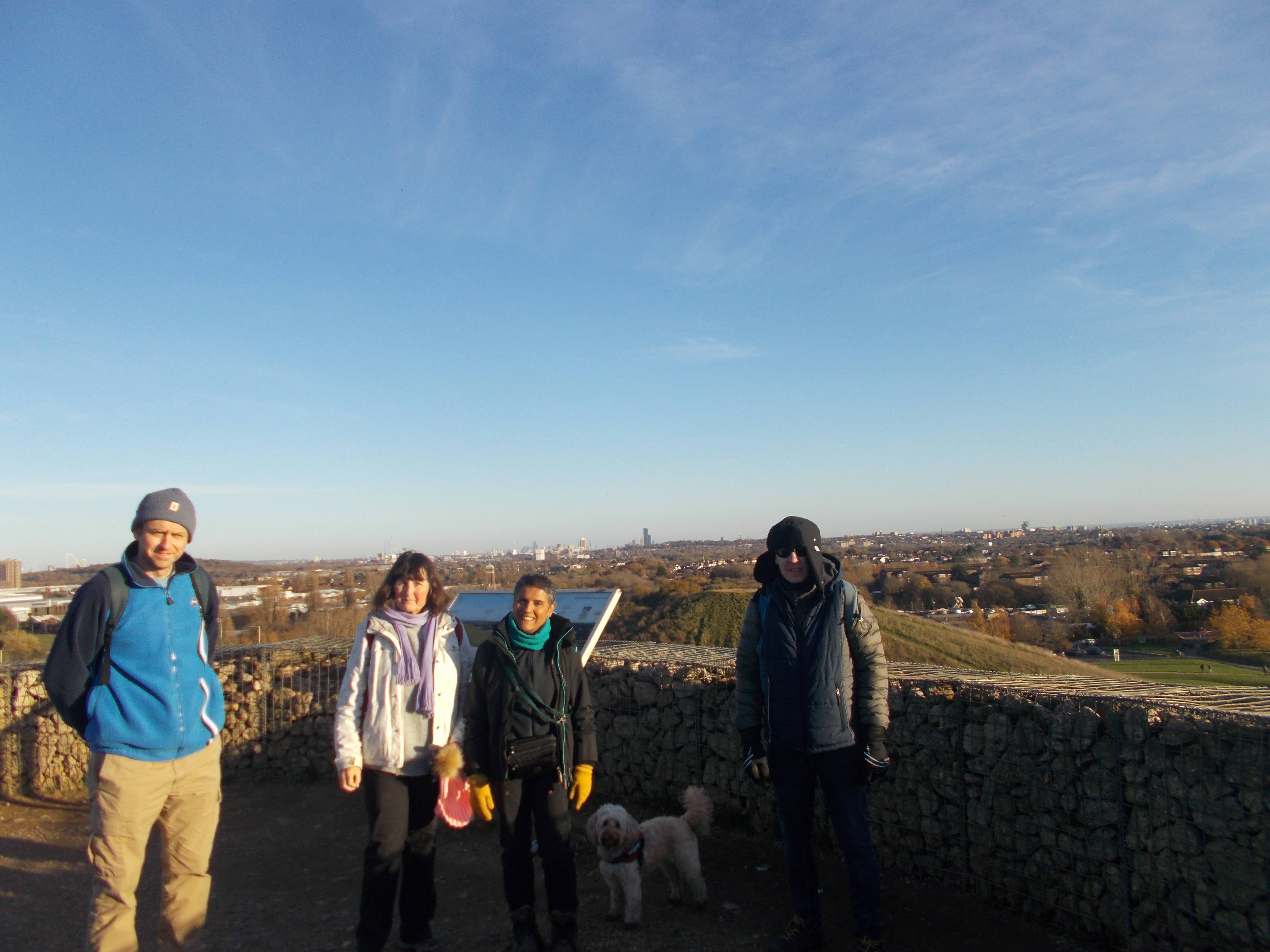 4 of us met outside the Black Horse pub on a beautiful winter rainy day. As the weather was so bad and roadworks on the road we decided to go for a cuppa first in the Black Horse. After about 30 minutes we set off and never saw rain again. We proceeded down Maybank Avenue, passing Daniel's famous LNER football ground. We then proceeded to Horsenden Hill where we climbed up to the summit. We admired the many great viewpoints. We then went down the hill towards the Gruffalo Park where we met the fox, the mouse, the owl, the snake and finally the gruffalo. We then went to Horsenden Cafe and we had some nice sweet treats and coffee to prepare us for the next leg of our journey, and some had a bottle of the local brew.