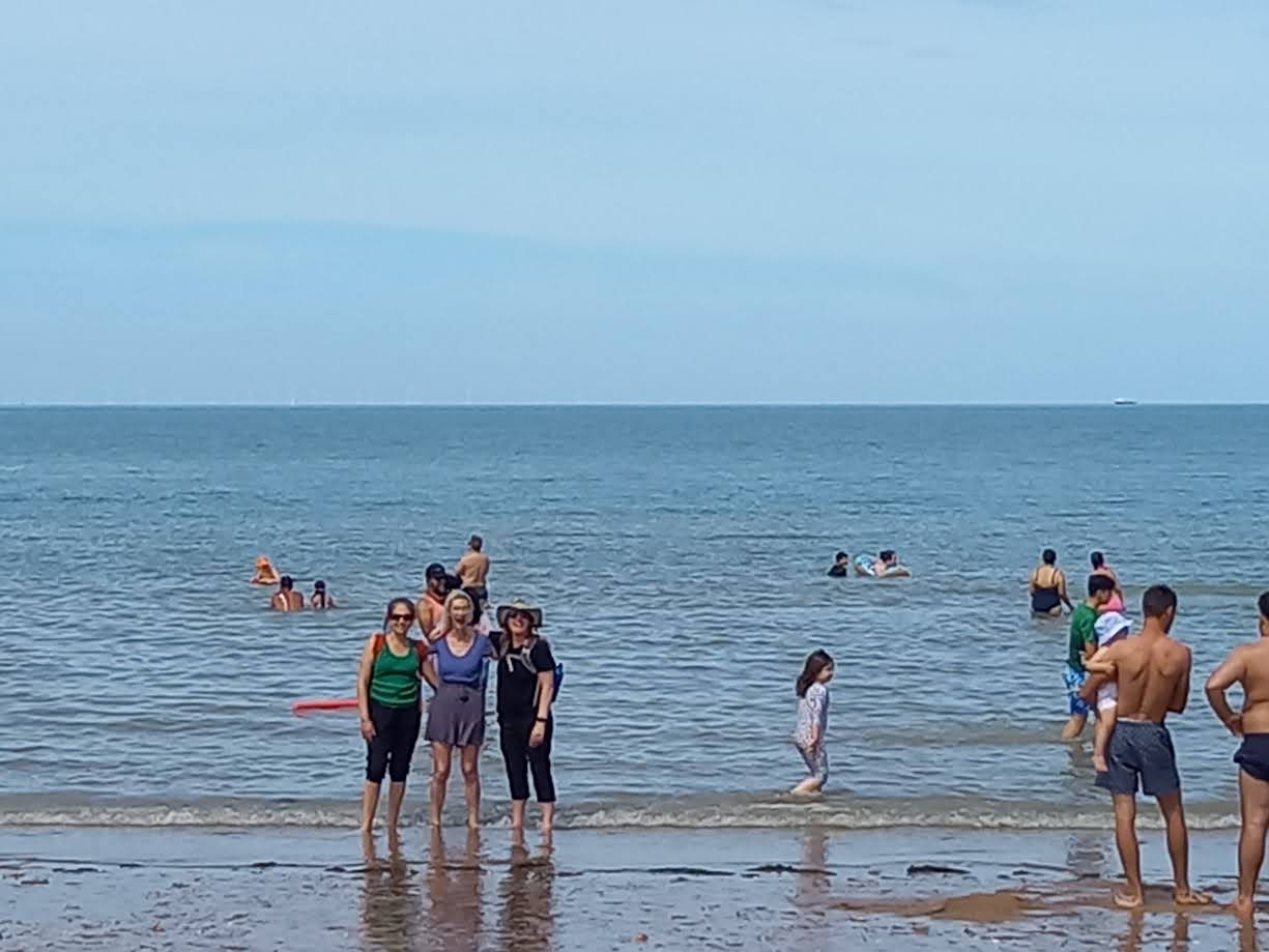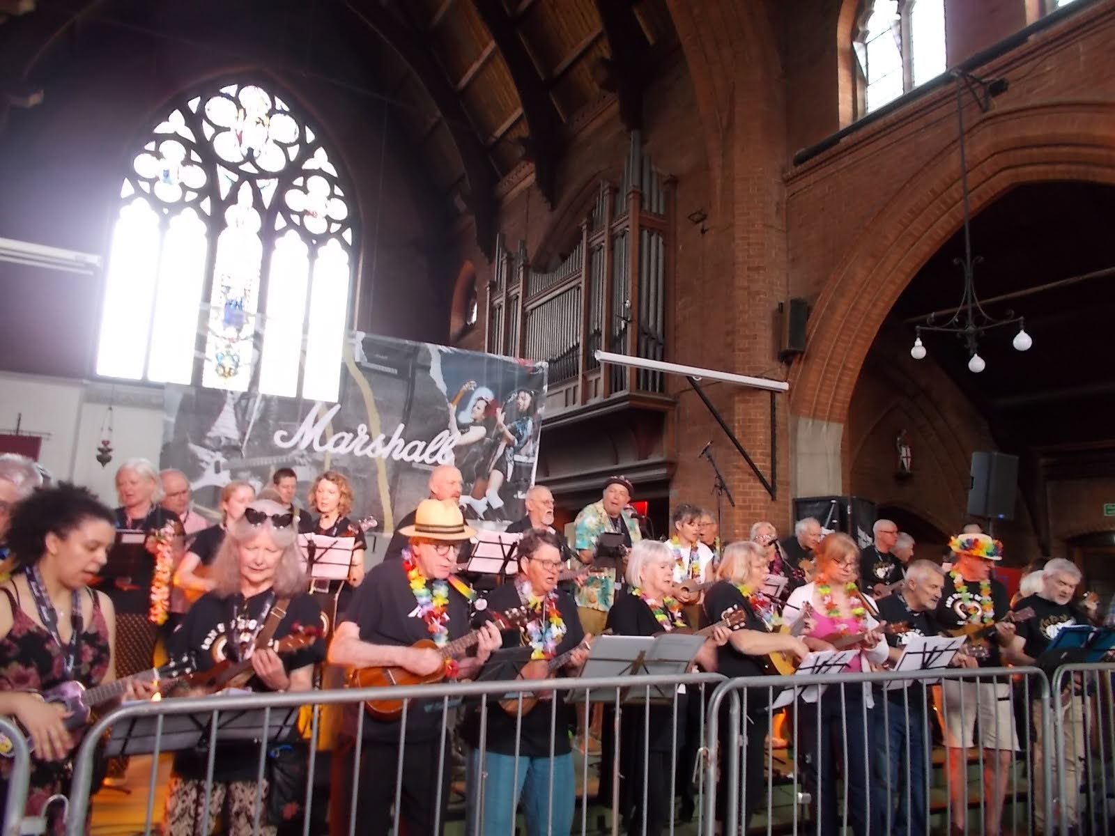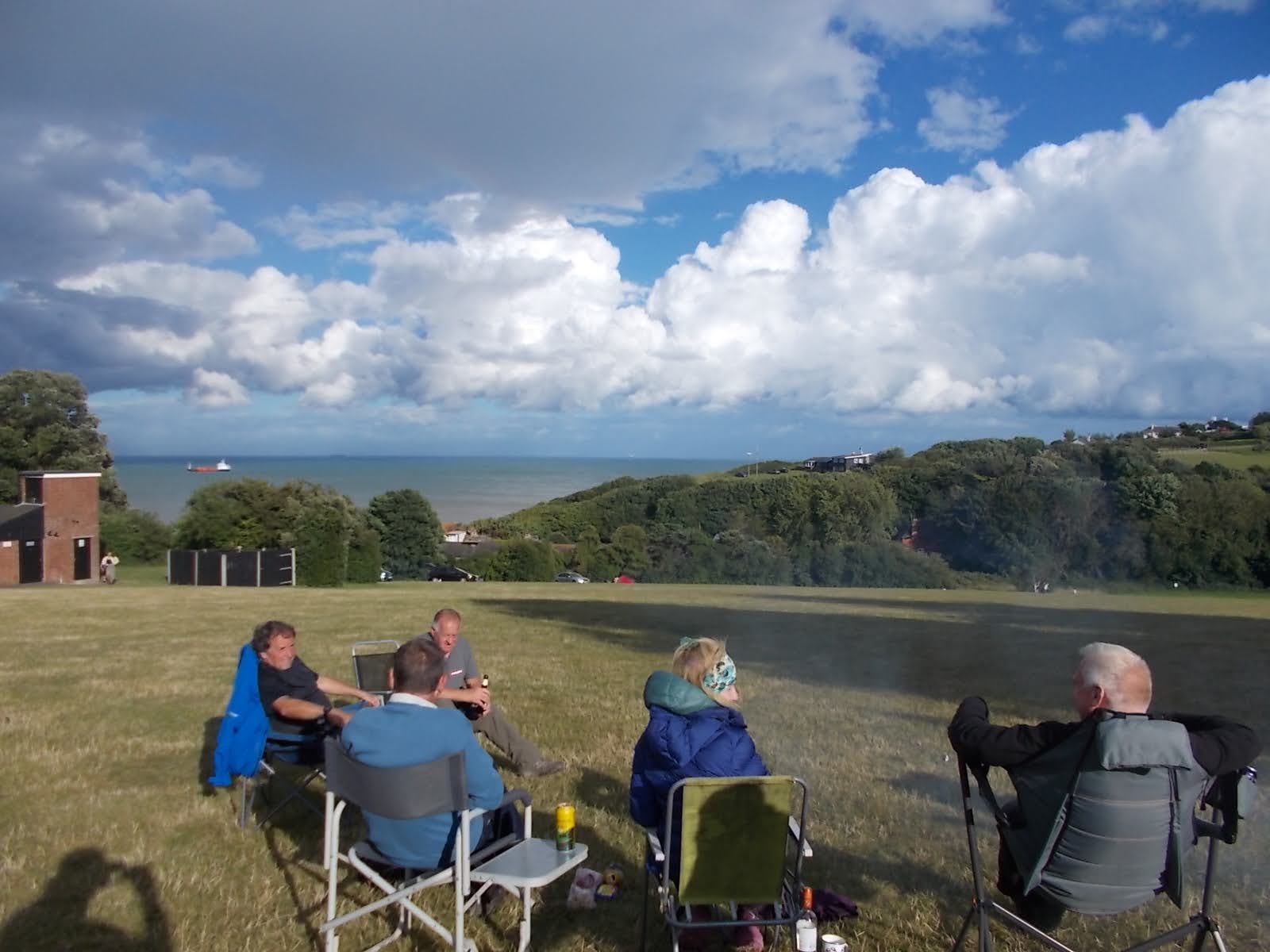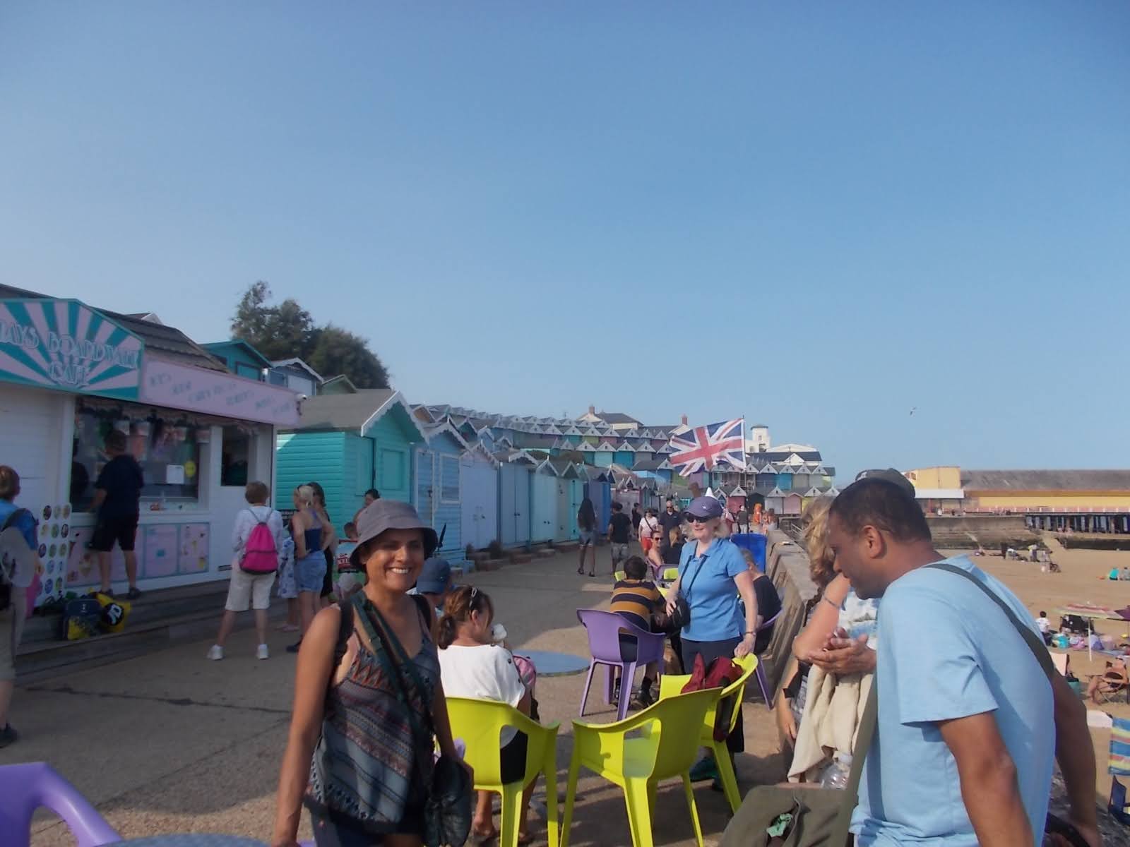 We had lunch after another summit, taking in the crowds struggling up the next hill. Ice creams of course at Birling Gap, the National Trust tea rooms packed with walkers. We climbed to Beachy Head just above the lighthouse, keeping clear of the precarious cliff edge. Then the long descent to Eastbourne, the gardens and esplanade as elegant as ever. Serendipity rewarded us at the art deco bandstand with a rehearsal for the next day's concert. Then the final leg to the pier for fish and chips and a Northern Soul band in the Grand Ballroom.