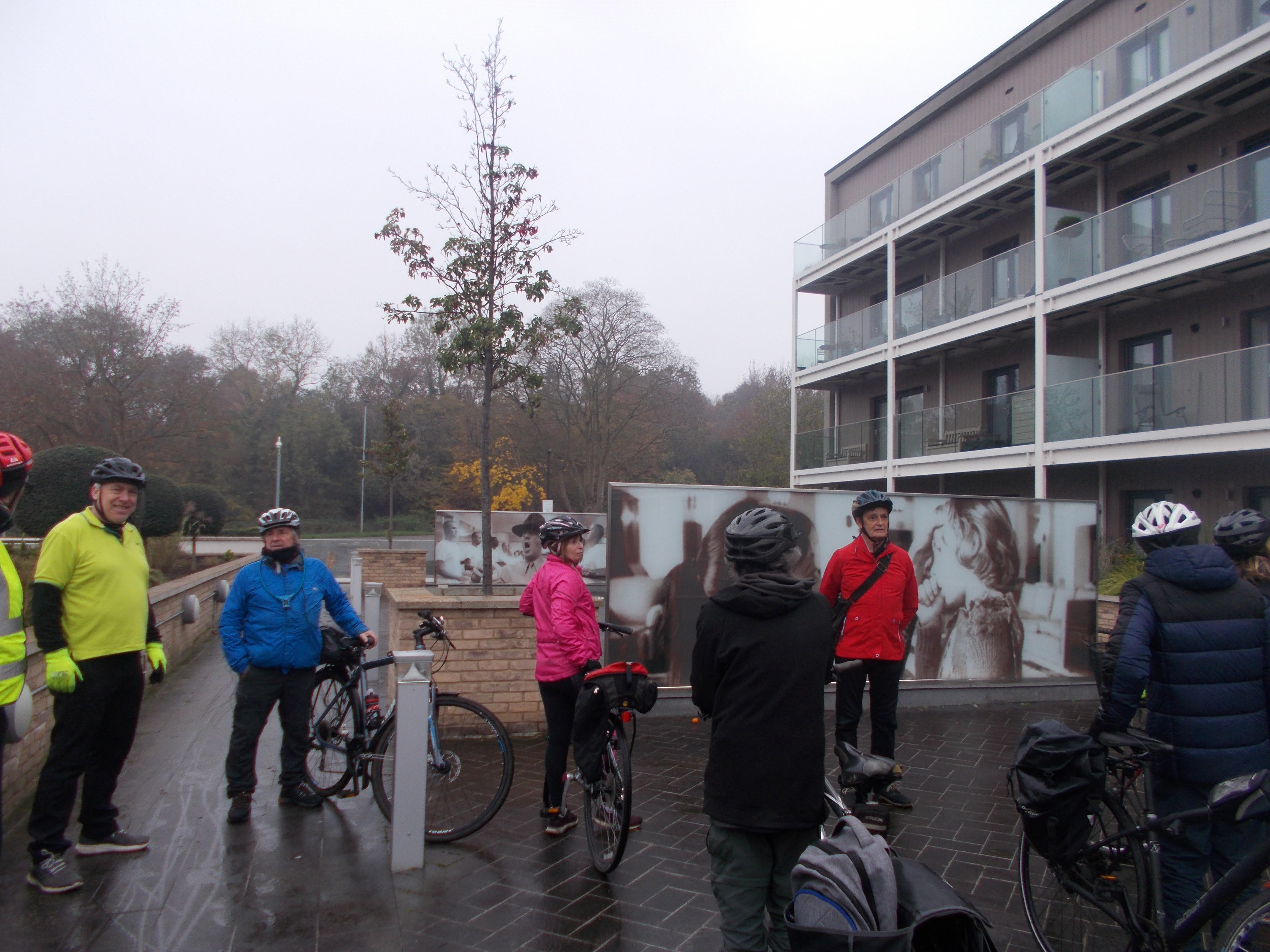 Nine cyclists met at Uxbridge for our Armistice Day Cycle Ride. We relocated to the market square as Rusty Bike Café staff AWOL. The delay allowed us to witness the marching troops and the two-minute silence at the war memorial. We then set off on the Grand Union Canal passing some diverse DIY vessels. We reached the majestic HS2 Colne Valley viaduct which soars above the canal. "Brunel would have been proud" announced Lisa. Then through Denham to explore the converted Denham Film Studios. The art deco facade and the original apartments remain within the new development. It was the studio where, among many others, the technicolour wonders of Powell Pressburger were created.