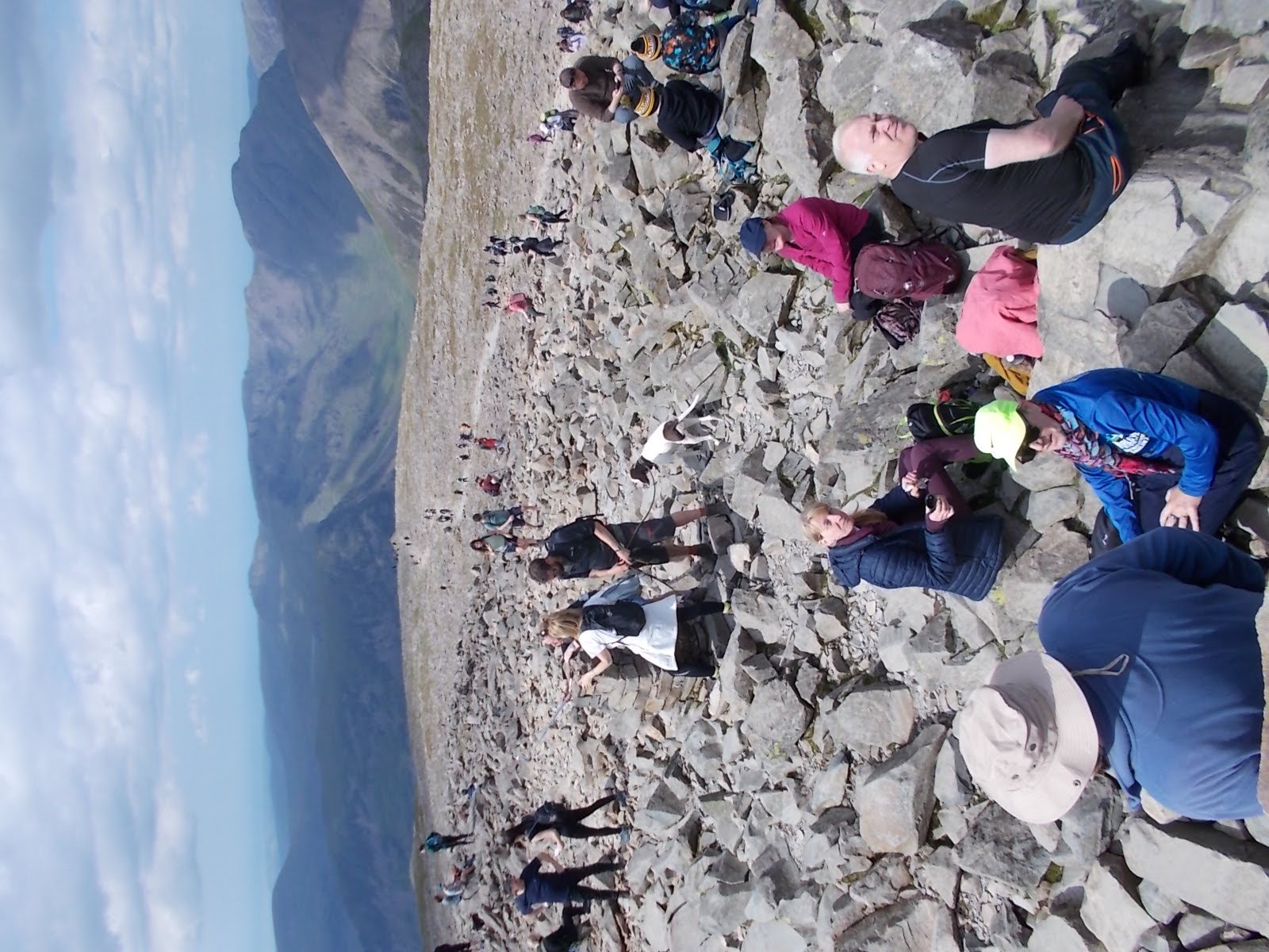 This was an early start for the group as we were going to climb Croagh Patrick, which is the fourth highest mountain in the province and an important climb for pilgrims to make in honour of St Patrick. The bus to our start point in Murrisk was at 8:42, with the next bus not being for another 3 hours which would have meant that we would still be on the mountain as it would be getting dark. On arrival in Murrisk we paused for a group photo with the mountain in the background. Unfortunately the top of the mountain could not be seen due to the low cloud. The start of the footpath heading upwards towards the mountain was wide and tarmacked; this soon led to a steep set of steps but still quite easy to manage, but as we passed the statue of St Patrick and a warning sign informing climbers that if they were struggling they should turn back, the steps ended and the path become a clearly marked but stony path which was quite steep. We were passed by several fell runners as we continued our journey upwards, and when we entered into the clouds that were surrounding the top of the mountain, the path then became very steep, leading to a couple of the group deciding to turn back. The rest continued onwards and upwards, finally arriving at St Patrick's Oratory at the summit after the 2507 ft climb. The weather and visibility had now worsened, so after posing for photos at the top we made our way back down the same way as going up instead of completing the planned circular route. The very same bus and driver arrived to take us back from Murrisk and on arrival in Westport the bus driver asked the passengers to give us a cheer for managing to climb Crough Patrick. We were all a little wet after the day's adventure. After a quick change of clothes the group headed out for a few more pints of Guinness and musical entertainment.